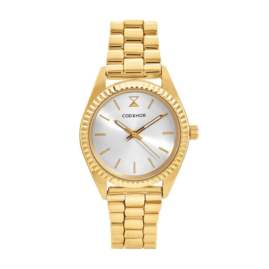 Montre Codhor Sandy Dore Ronde Quartz 32mm Lunette Crantee Fond Blanc Bracelet Alliage Dore Wbc0126-022