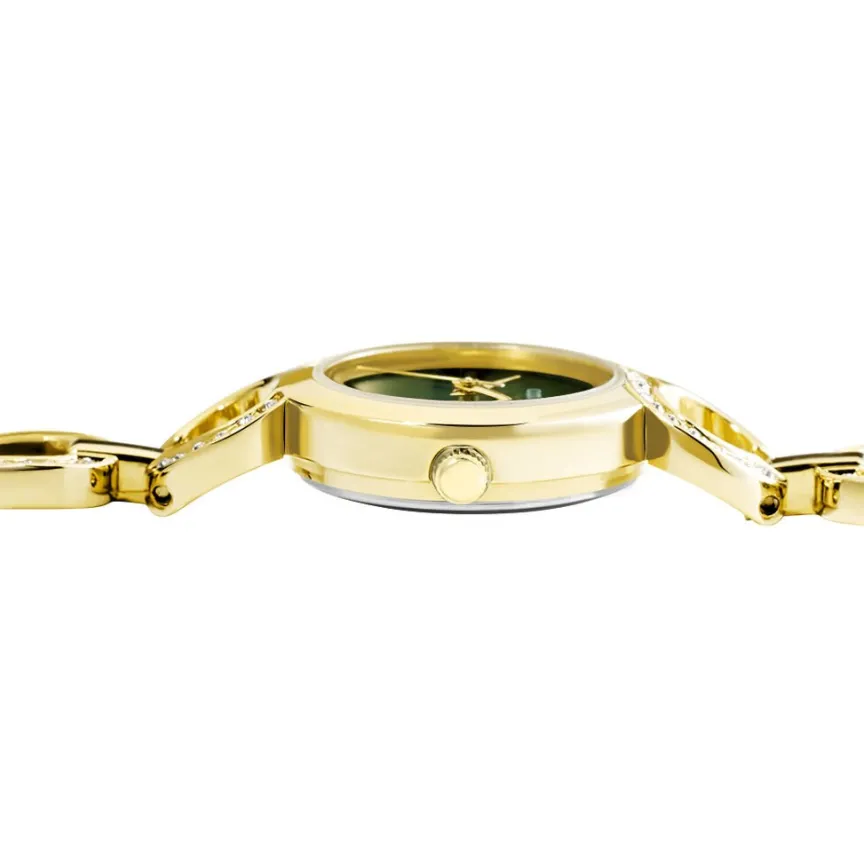 Montre Codhor Sarah Alliage Doré Ronde Quartz 24mm Lunette Strass Fond Vert Bracelet Alliage Doré Et Strass P100944-h