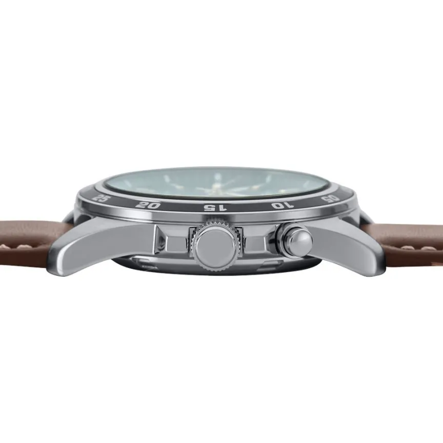 Montre Seiko Sport Acier Gris Ronde Kinetic 42.6mm Fond Vert Lunette Noire Bracelet Cuir Marron Ska791p1