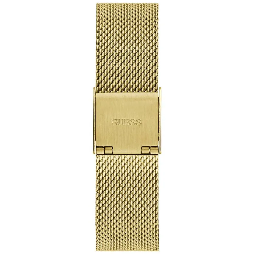Montre Guess Tapestry Acier Doré Carrée Quartz 32mm Fond Doré Lunette Strass Bracelet Acier Maille Milanaise Doré Gw0354l2