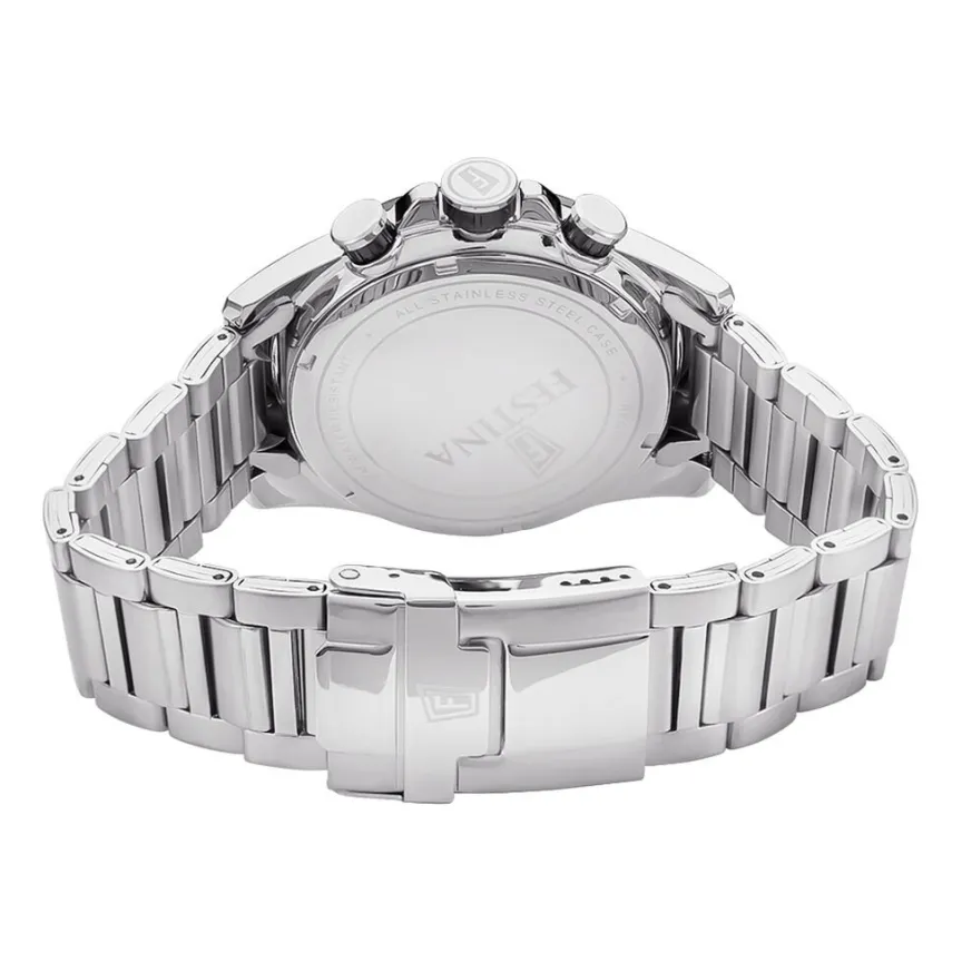 Montre Festina Timeless Chronograph Acier Blanc Ronde Quartz Chronographe 45mm Fond Noir Lunette Noire Bracelet Acier Argenté F20560/6