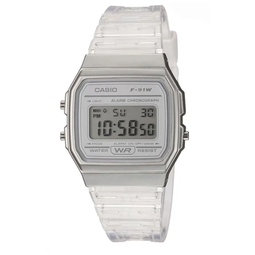 Montre Casio Collection Vintage Edgy Resine Blanc Rectangulaire Quartz Digitale 38.2mm Fond Blanc Bracelet Resine Blanc F-91ws-7ef