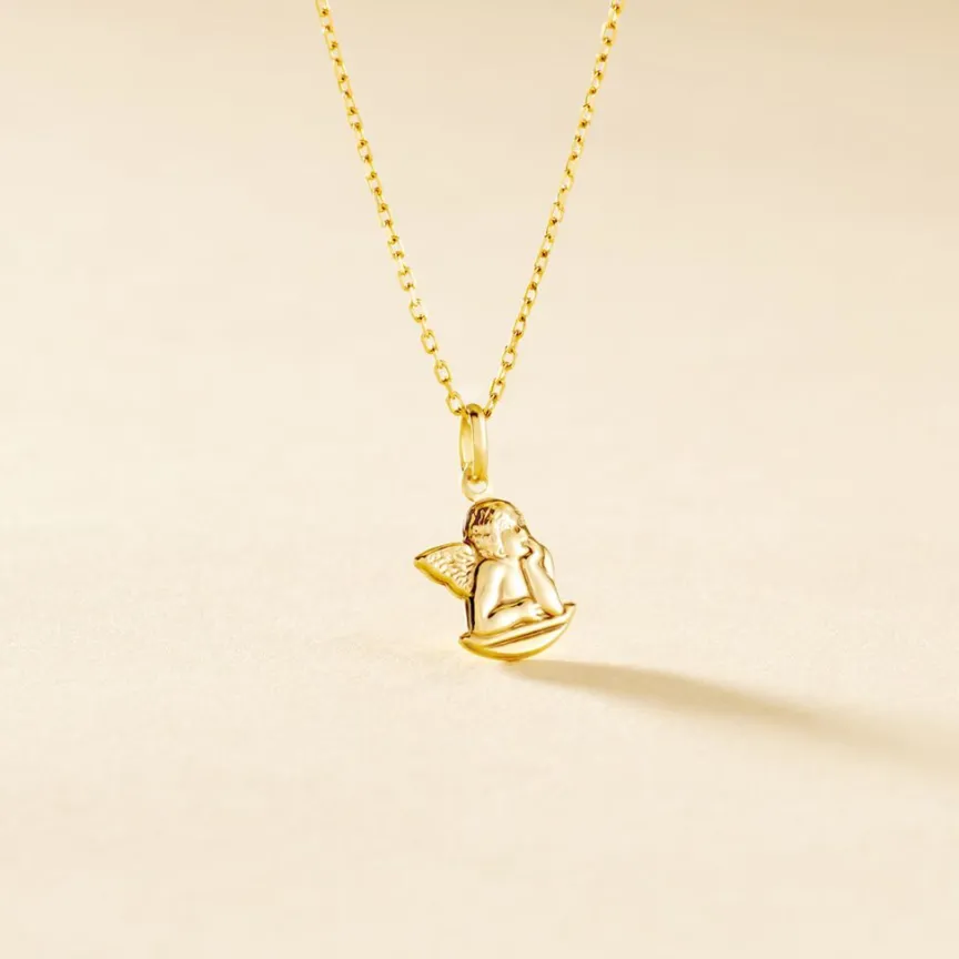 Pendentif Or Jaune 375/1000 Motif Ange Endormi