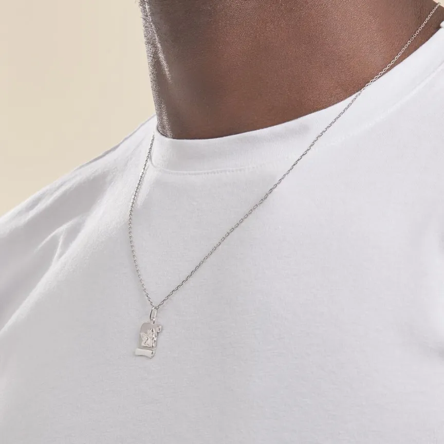 Pendentif Or Blanc 375/1000 Parchemin Brossé Ange