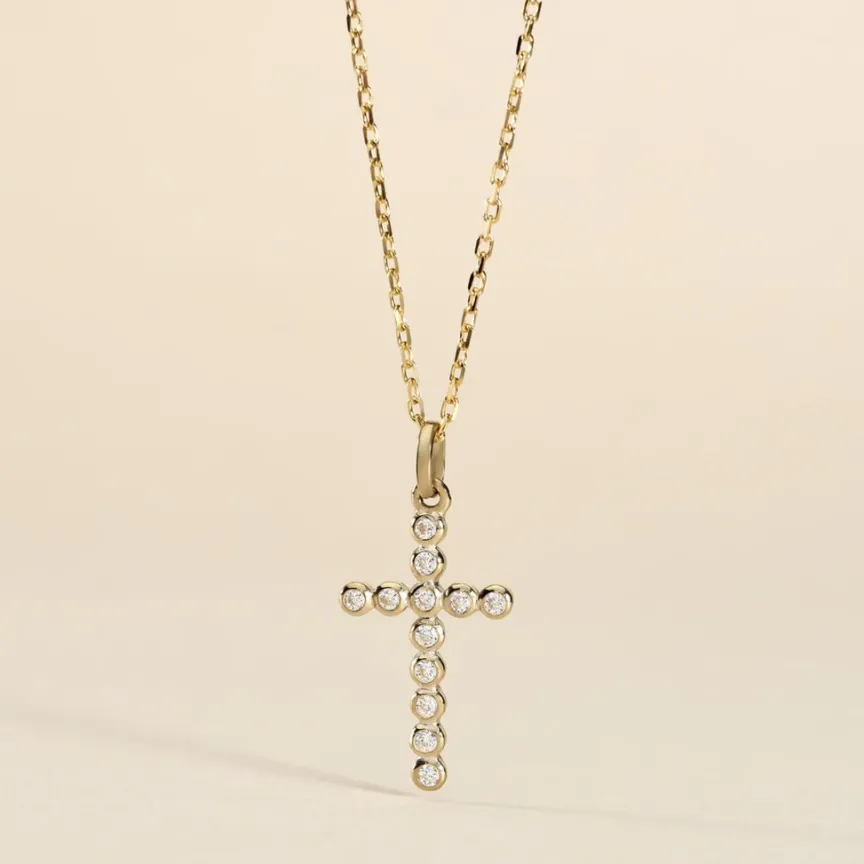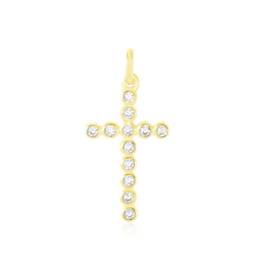 Pendentif Or Jaune 375/1000 Motif Croix Oxydes De Zirconium Pavage