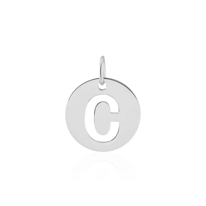 Pendentif Argent Blanc 925/1000 Pastille Lettre C Diametre 18mm