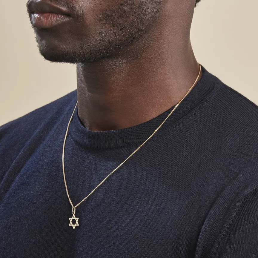 Pendentif Or Jaune 375/1000 Motif Etoile De David Lisse Ajourée
