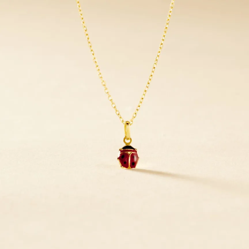 Pendentif Or Jaune 375/1000 Coccinelle Email Rouge Mm