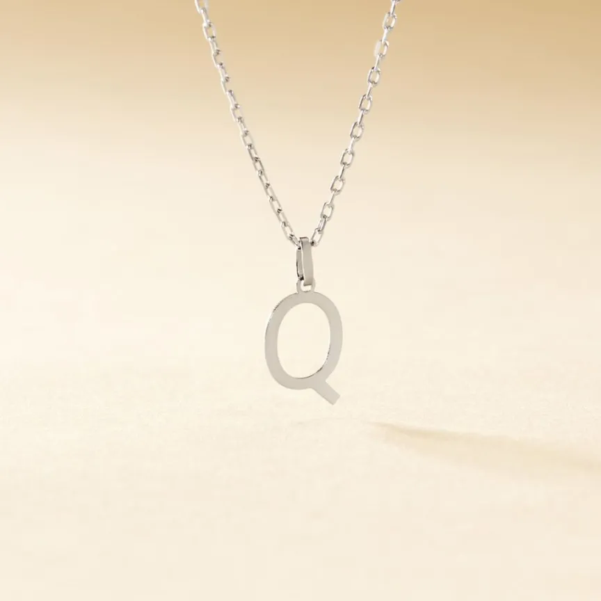 Pendentif Or Blanc 375/1000 Lettre Q