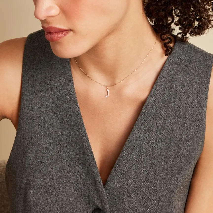 Pendentif Or Jaune 375/1000 Lettre J Oxydes De Zirconium