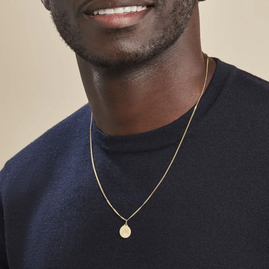Pendentif Or Jaune 375/1000 Medaille Ronde Motif Verseau
