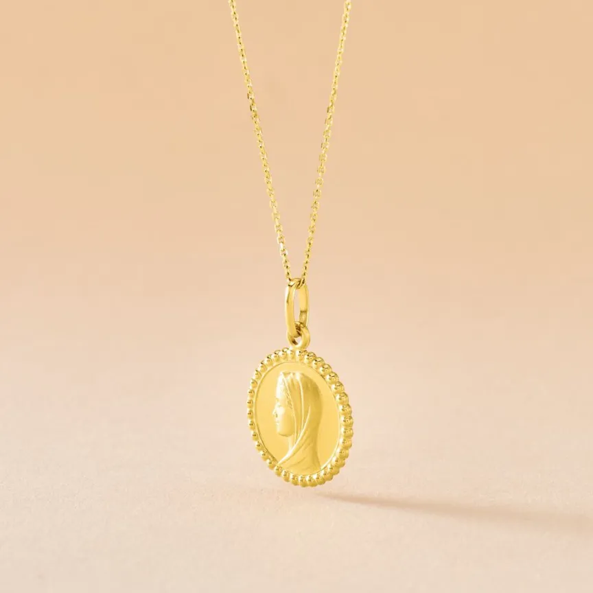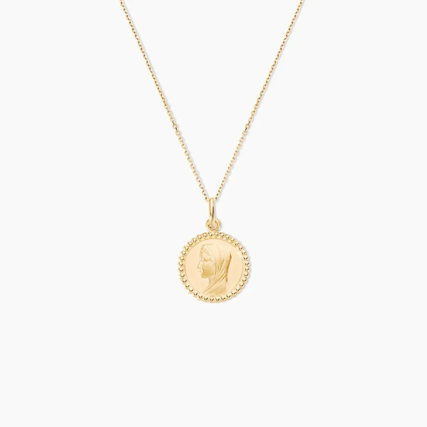 Medaille Or Jaune 750/1000 Vierge Effet Mat Contour Perle Diametre 16mm