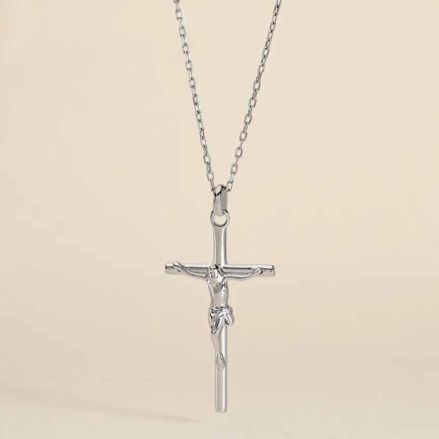 Pendentif Argent Blanc 925/1000 Croix Christ