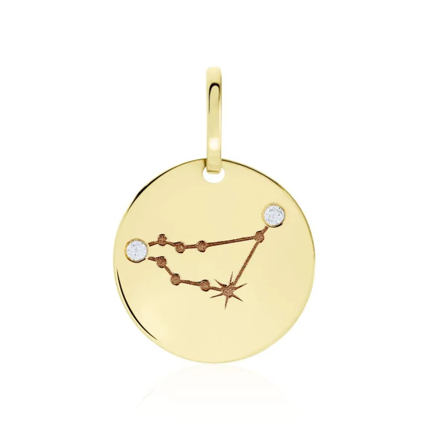 Pendentif Or Jaune 375/1000 Zodiaque Capricorne Oxyde De Zirconium 0.045cts Serti Grains