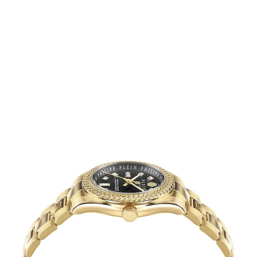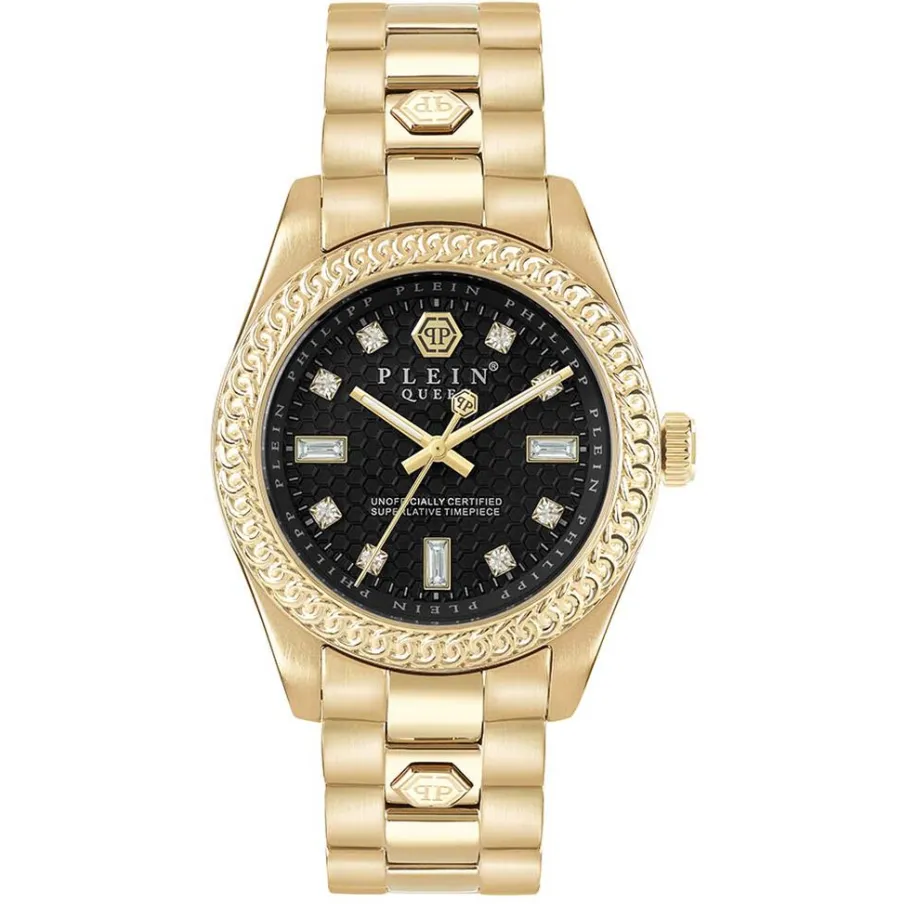 Montre Philipp Plein Queen Acier Doré Ronde Quartz 36mm Fond Noir Bracelet Acier Doré Pwdaa0621