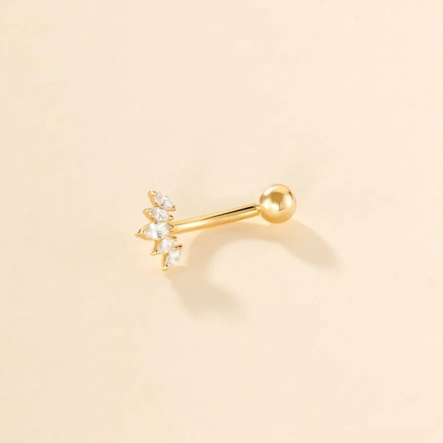 Piercing De Nombril Or Jaune 375/1000 5 Amandes Oxydes De Zirconium Navette Sertis Griffes