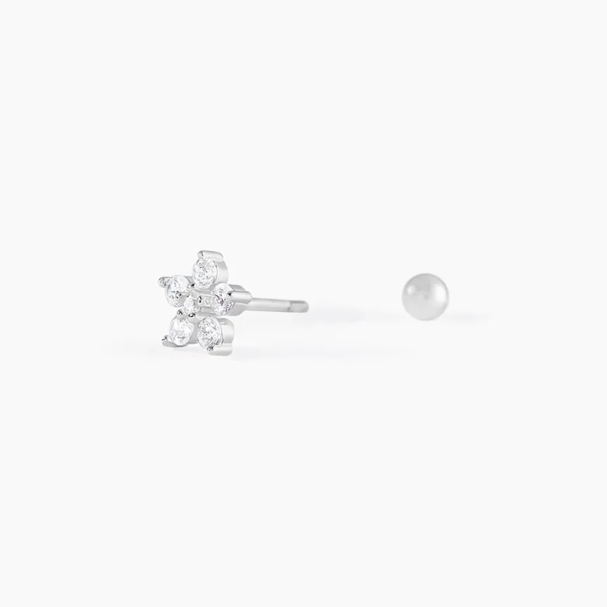 Piercing D’oreille Unitaire Argent Blanc 925/1000 Fleur Oxydes De Zirconium