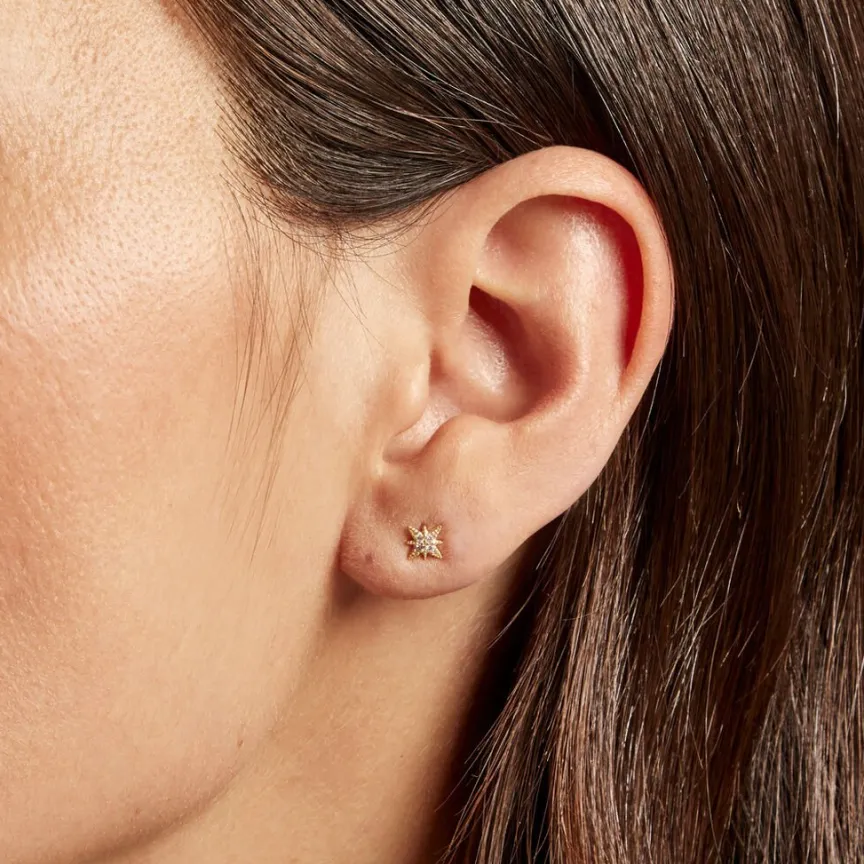 Piercing D’oreille Unitaire Or Jaune 375/1000 Etoile Oxydes De Zirconium Sertis Griffes
