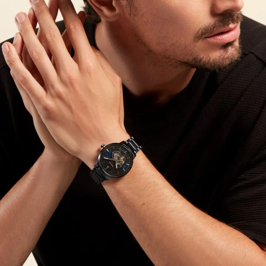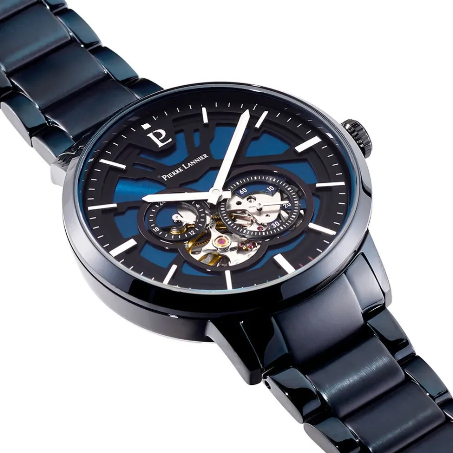 Montre Pierre Lannier Trio Acier Bleu Rond Automatique 42mm Fond Bleu Bracelet Acier Bleu 333d469
