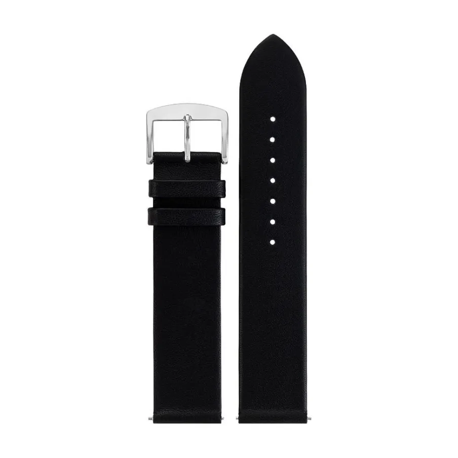 Bracelet De Montre Rochet Cuir D’agneau Lisse Noir Boucle Argentée 20/20mm