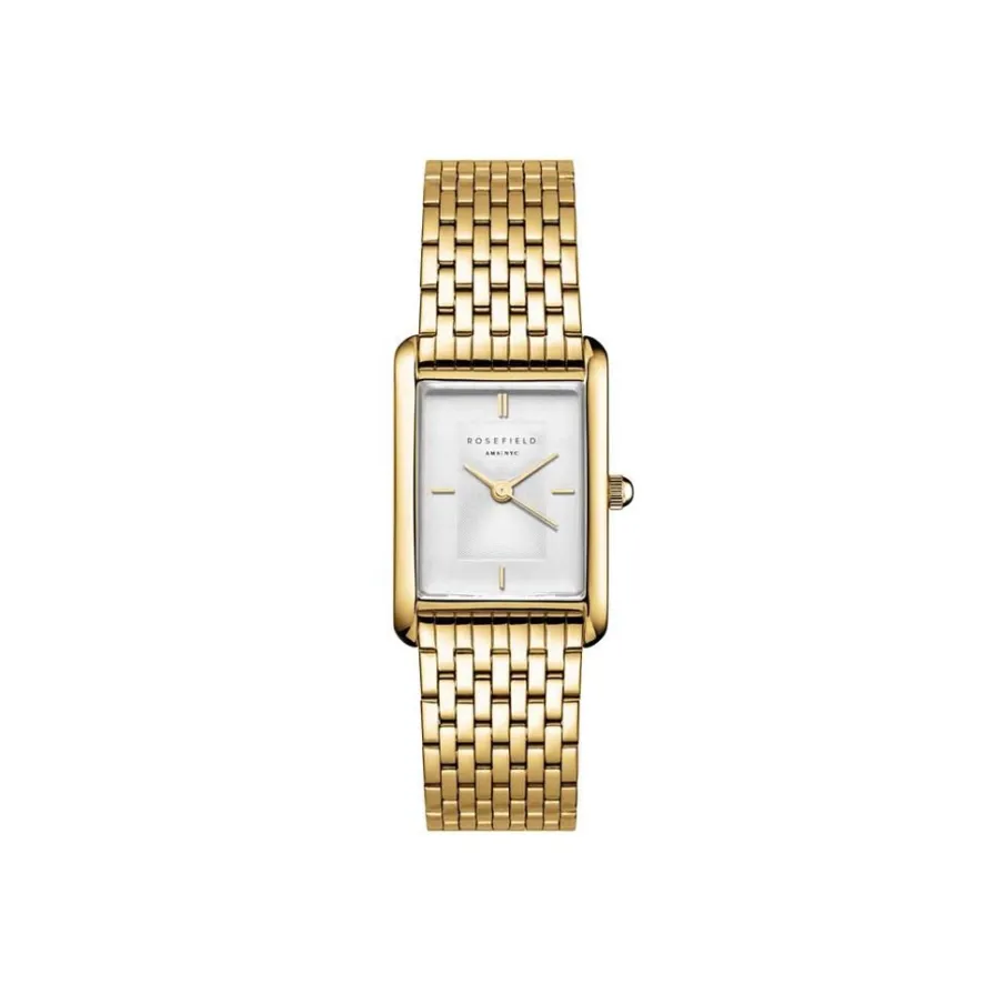 Montre Rosefield Heirloom Laiton Dore Rectangulaire Quartz 23.5mmx30.6mm Fond Blanc Bracelet Acier Dore Hwgsg-h01