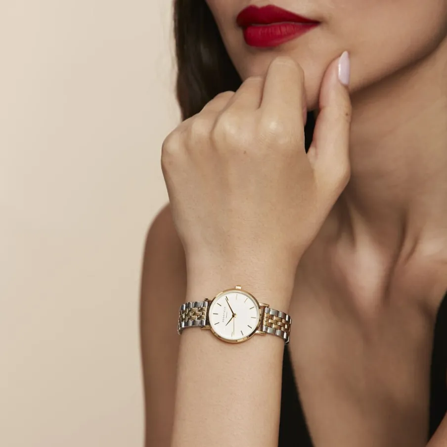 Montre Rosefield Small Edit Acier Doré Ronde Quartz 26mm Fond Blanc Bracelet Acier Bicolore 26sgd-269