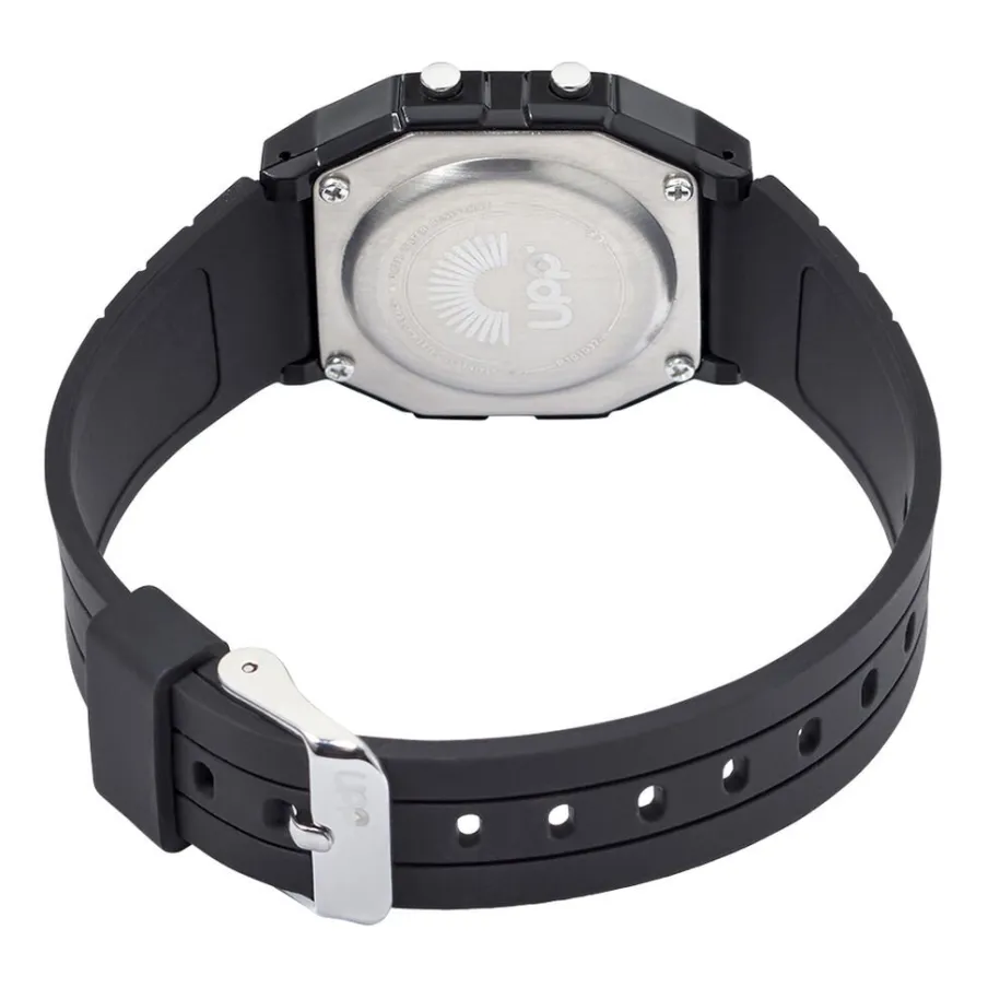 Montre Upp Square Plastique Noir Octogonal 38mm Fond Noir Bracelet Silicone Noir P101037-a