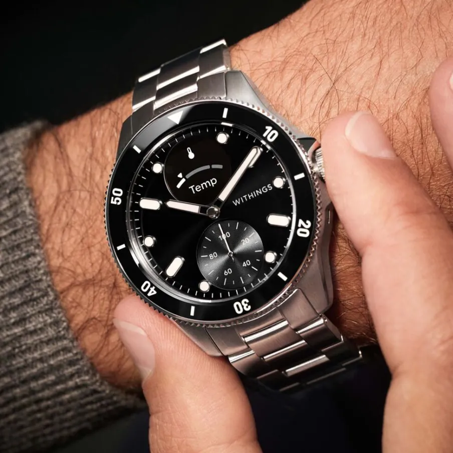 Montre Withings Scanwatch Nova Acier Inoxydable Ronde Argente Connectee 42mm Fond Noir Bracelet Acier Inoxydable Argente Wswnblack
