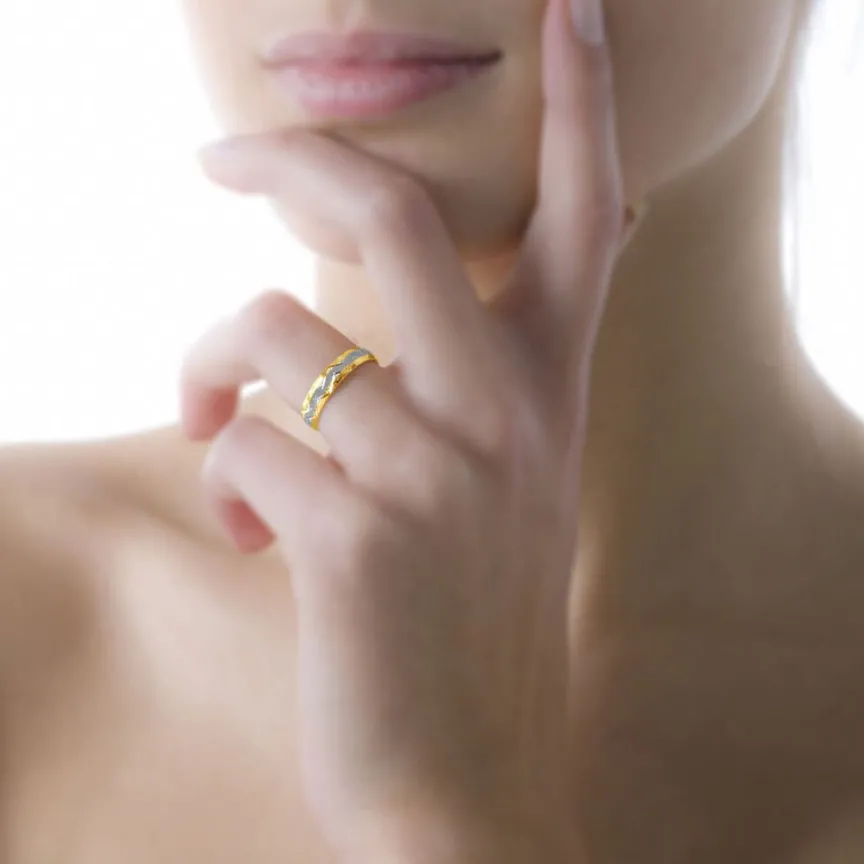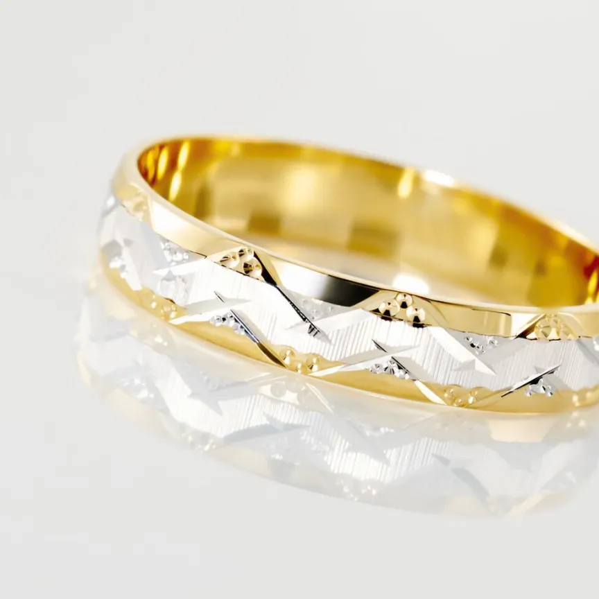 Alliance Or Bicolore Jaune Et Blanc 750/1000 Motifs Vagues Fantaisies 4mm