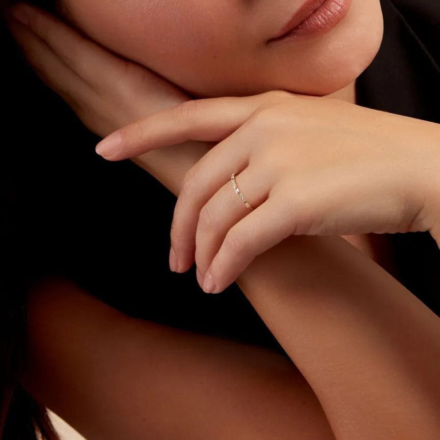 Demi Alliance Or Jaune 375/1000 Diamants 0.1cts Baguettes/ronds Sertis Griffes