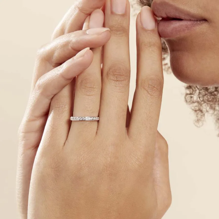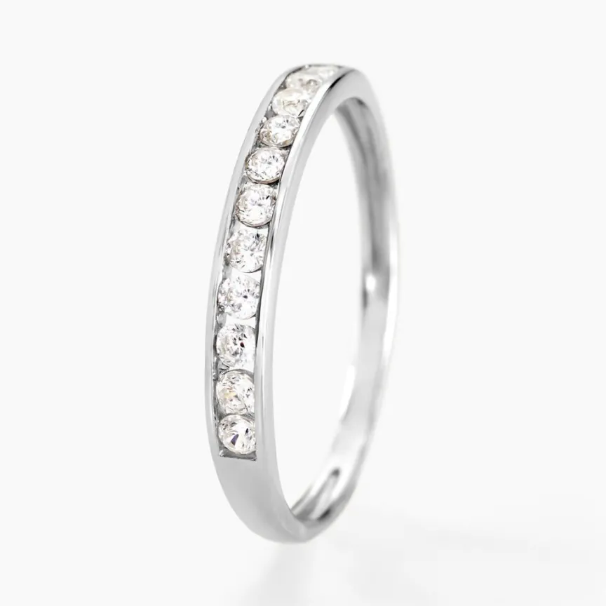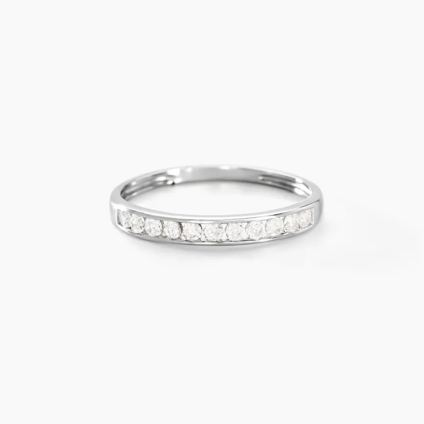 Demi Alliance Or Blanc 375/1000 Oxydes De Zirconium Ronds Serti Rail 2mm