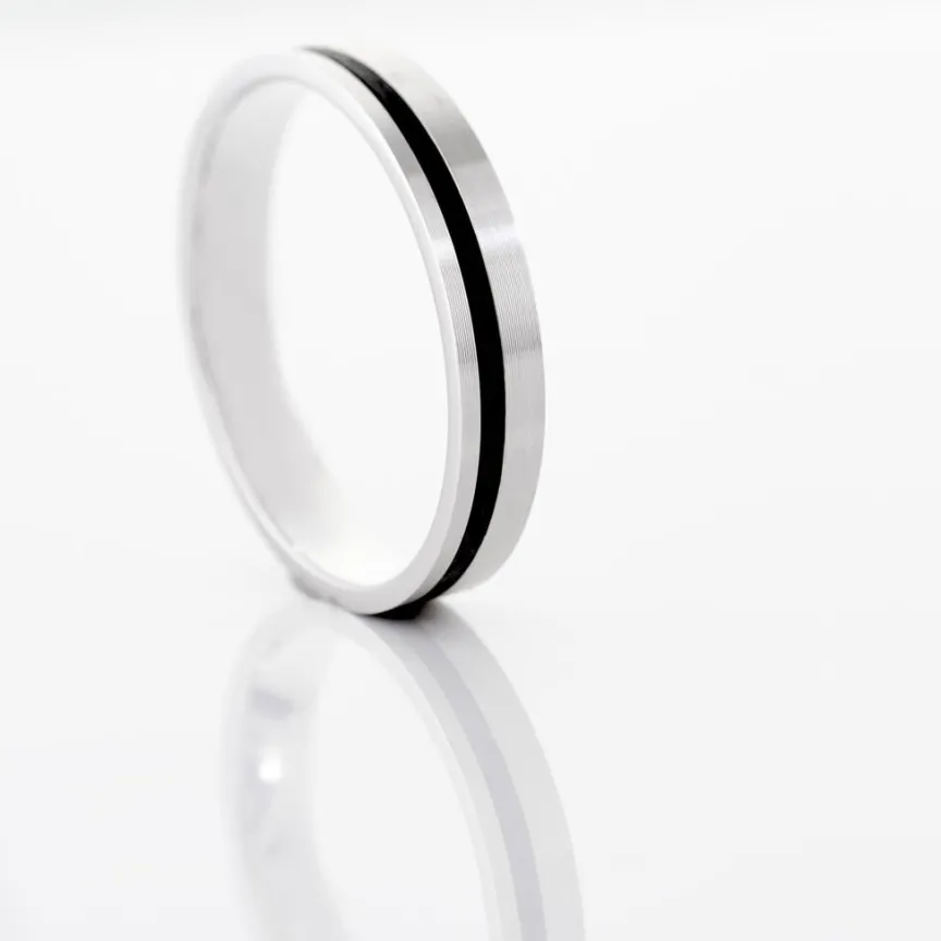 Alliance Or Blanc 375/1000 Et Carbone Telio 4mm