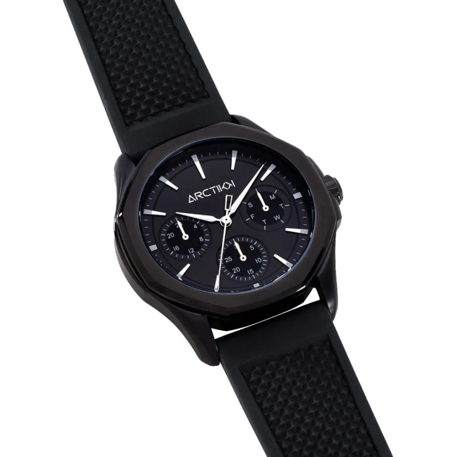 Montre Arctik Defi Alliage Noir Quartz Multifonction Octogone 42mm Fond Noir Bracelet Silicone Noir Ar.5586ma/02p