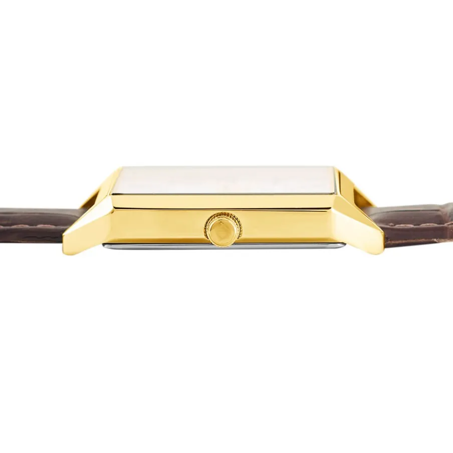Montre Arctik Retro Acier Dore Carree Quartz 33mm Fond Blanc Bracelet Cuir Vache Effet Alligator Marron P101196-b