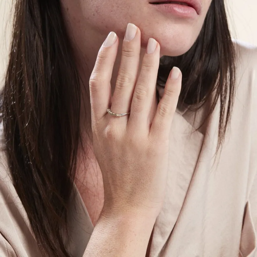 Bague Argent 925/1000 Barrette Baguettes Oxydes De Zirconium Nuances Vert