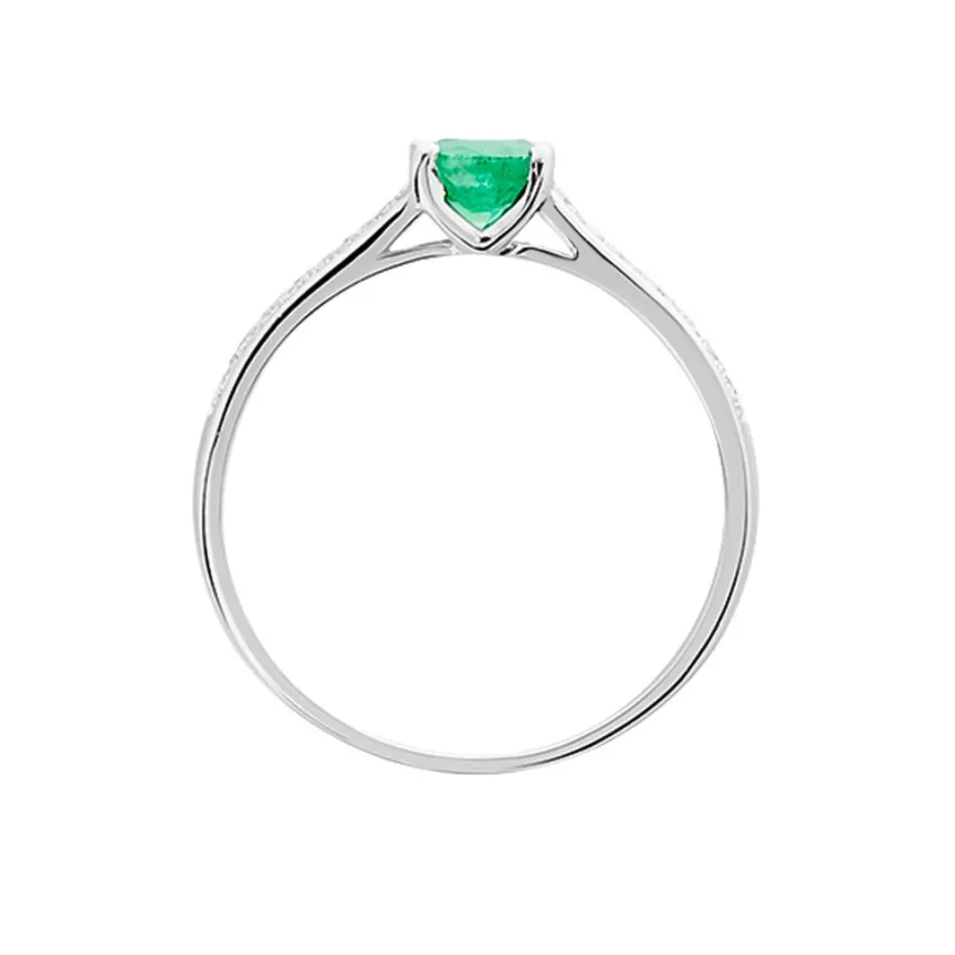 Bague Or Blanc 375/1000 Emeraude Ovale Accompagnée Diamants Mm