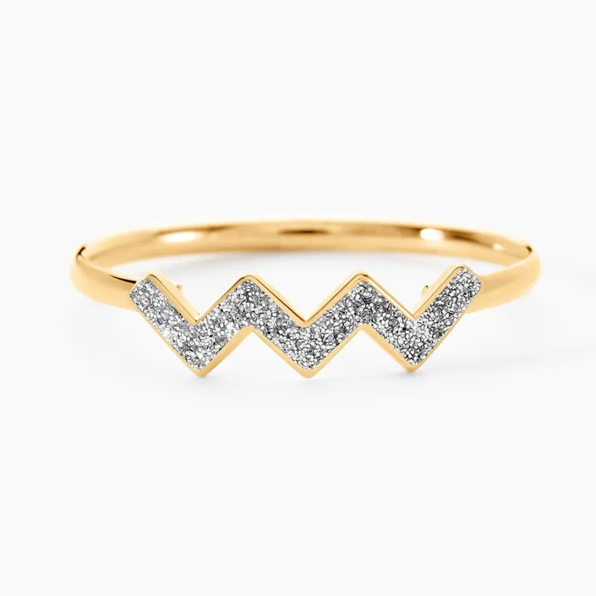 Bague Or Jaune 375/1000 Zigzag Glitter Argente