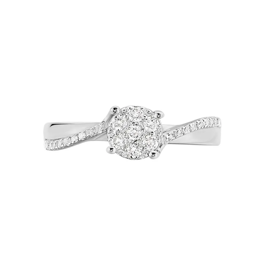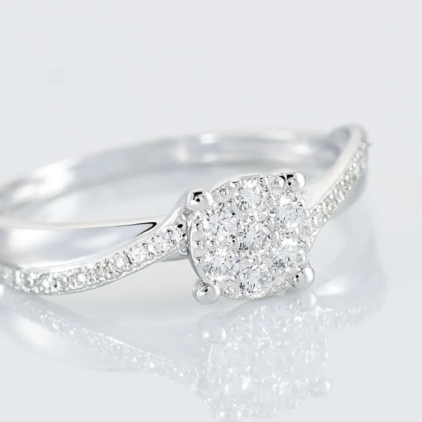 Bague Or Blanc 375/1000 Multi Pierres Diamants 0.2cts Corps De Bague Accompagne Etoile
