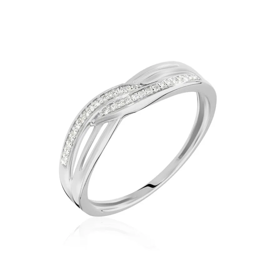 Bague Or Blanc 375/1000 Forme Entrelacée Pavage Diamants