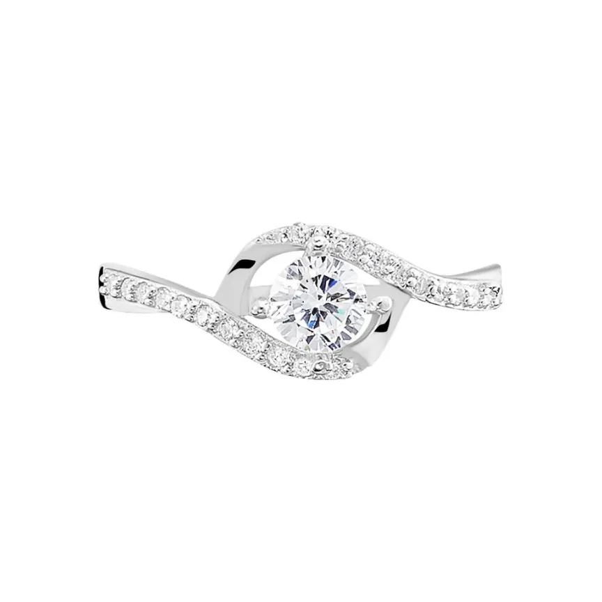 Bague Argent Blanc 925/1000 Oxyde De Zirconium Central Et Oxydes De Zirconium Motif Vague