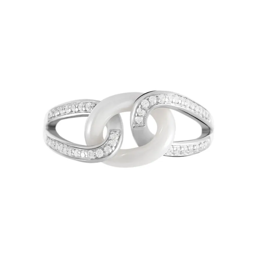 Bague Link Argent Blanc Céramique Et Oxyde De Zirconium-Histoire d’Or Hot
