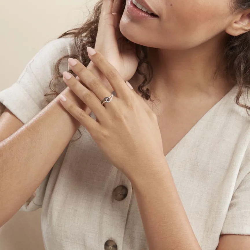 Bague Or Blanc 375/1000 Vagues Entrelacées Diamants Blancs Diamants Noirs
