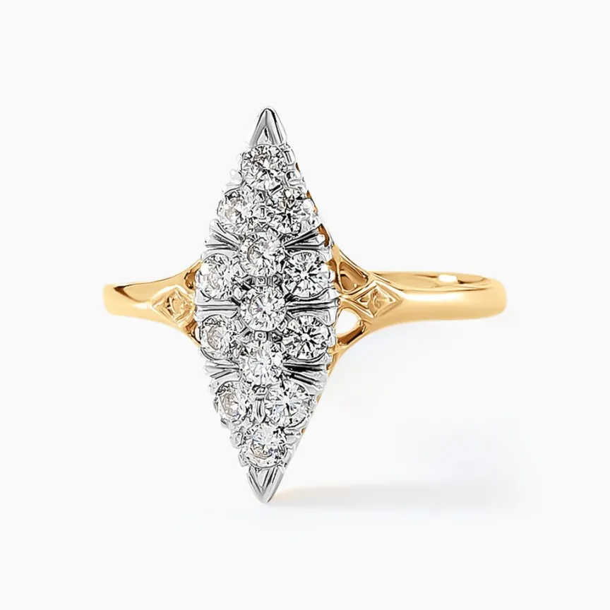 Bague Or Jaune 750/1000 Marquise Oxyde De Zirconium Sertis Griffes