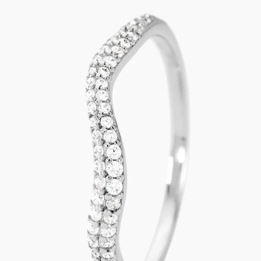 Bague Argent Blanc 925/1000 Forme Organique Pavage Oxydes De Zirconium