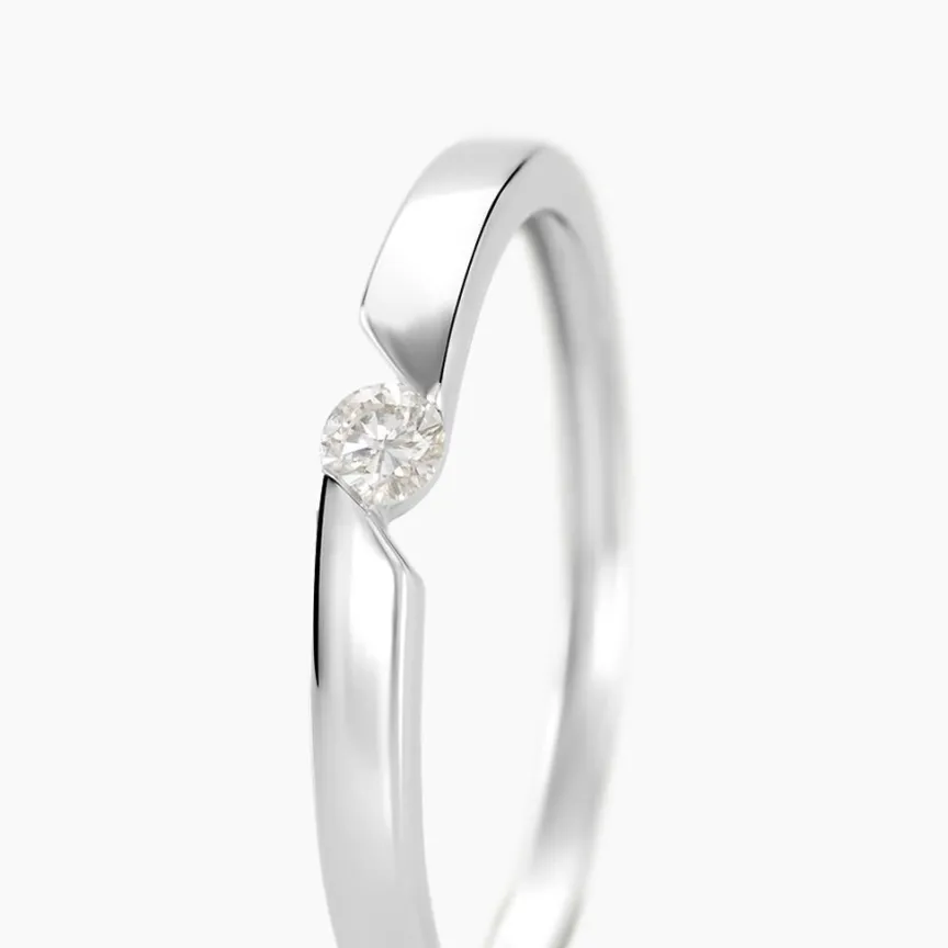 Bague Or Blanc 375/1000eme Solitaire 0.06cts Forme Couteau Diamant