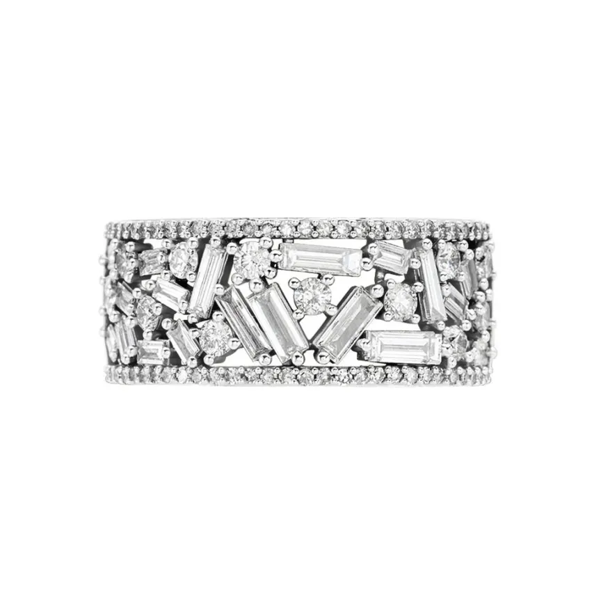 Bague Or Blanc 750/1000 Pavage Diamants Baguettes Et Brillants Serti Griffes