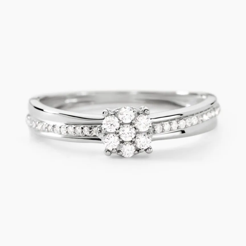 Bague Or Blanc 375/1000 Multipierre Accompagne Vrille Pavage Diamants