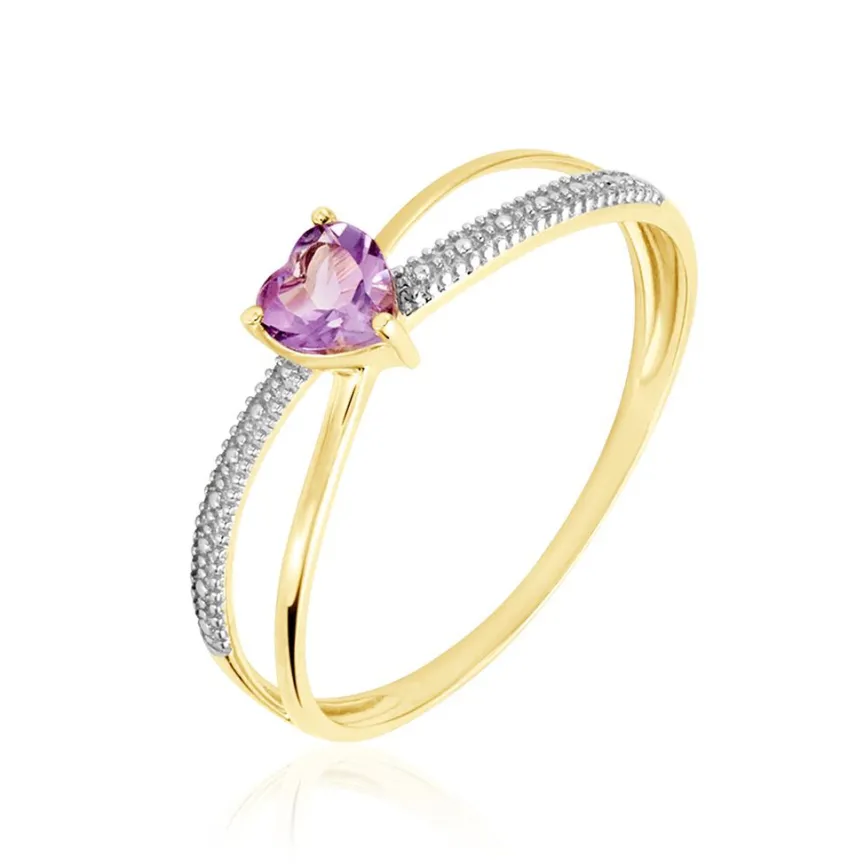 Bague Or Jaune 375/1000 Croisee Amethyste Coeur Serti Griffes