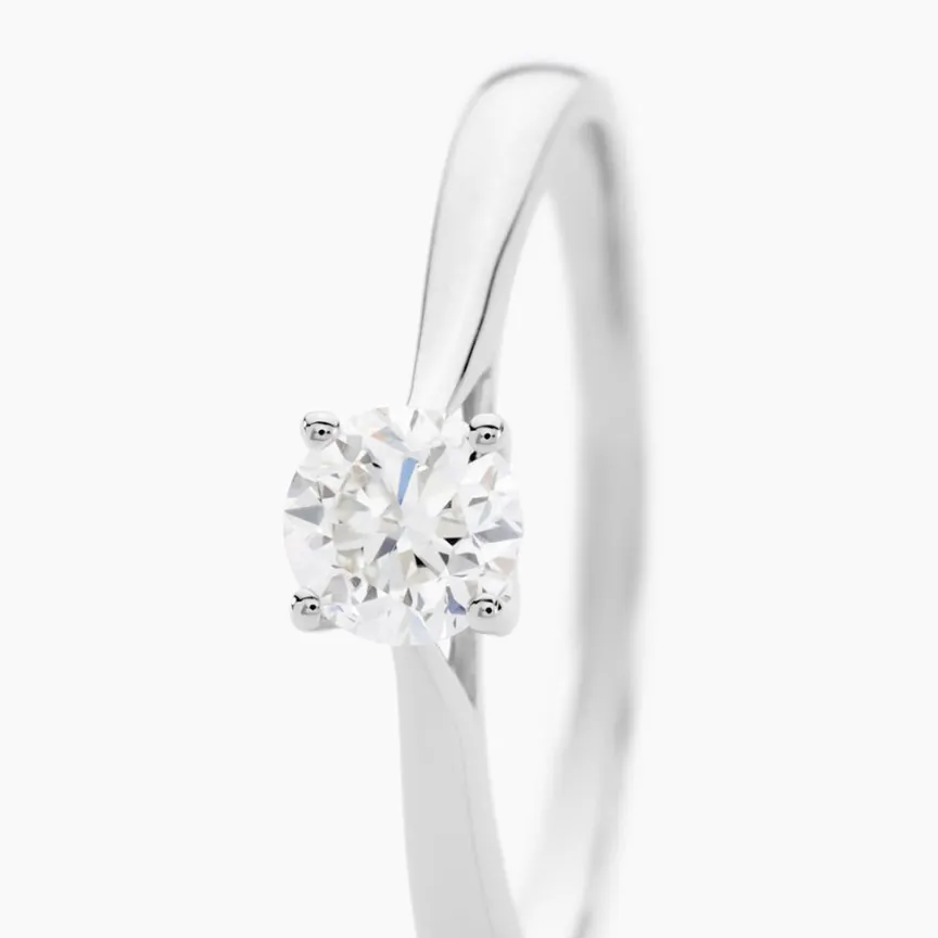 Bague Solitaire Or Blanc 375/1000 Diamant 0.41cts Serti 4 Griffes