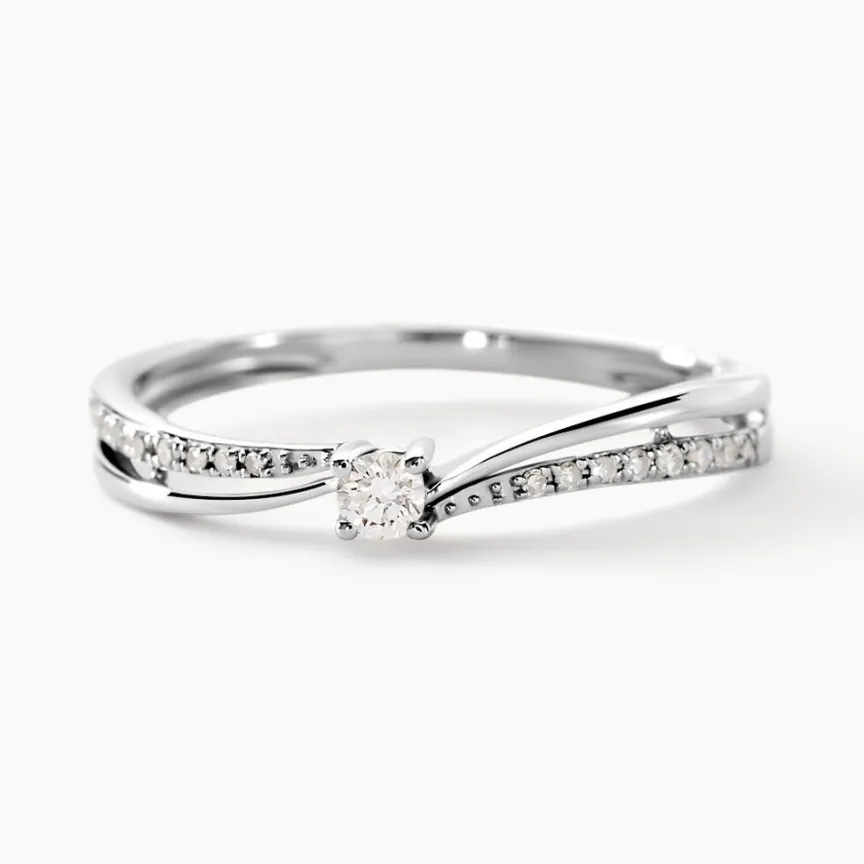 Solitaire Or Blanc 375/1000 Diamant Central 0.05ct Serti 4 Griffes Accompagne Diamants